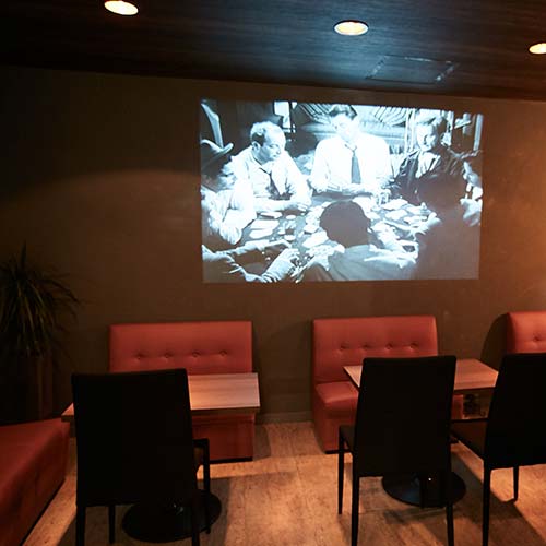 バーカウンターとスクリーン上映